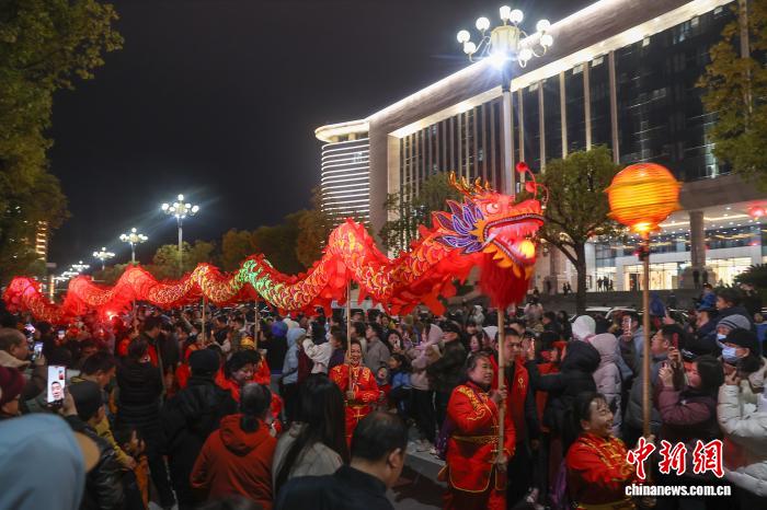 3月2日,元宵节前夜,“龙腾狮跃”迎献岁巡回举动正在江东北昌湾里办理局举办,夜色当中,1条条龙灯、板灯龙翩翩起舞,采莲舟、牙婆、蚌壳粗、渔人、浮薄花篮、北狮、扇子舞等风俗轮流演出,吸收了浩繁公众沿街旁观。图为1收舞龙队正在巡回。中新社记者 刘力鑫 摄